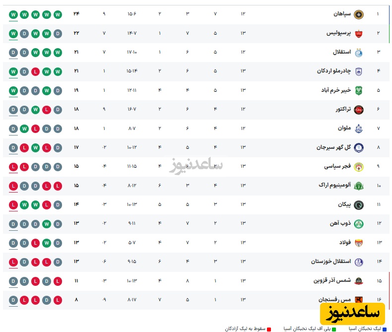 به گزارش سرویس ورزش ساعدنیوز، با پایان هفته سیزدهم رقابتهای لیگ برتر فوتبال، سپاهان با کسب 24 امتیاز و ثبت پنج پیروزی متوالی، مقتدرانه در صدر جدول ایستاده و با بهترین تفاضل گل، باثباتترین تیم فصل لقب گرفته است. در تعقیب سپاهان، پرسپولیس با وجود تنها یک شکست، بهدلیل تساویهای پرتعداد از صدر فاصله گرفته اما همچنان یکی از مدعیان اصلی قهرمانی به شمار میرود. استقلال نیز با خط حملهای فعال و 17 گل زده، در رده سوم قرار دارد و نشان داده در صورت تداوم روند بردهای اخیر میتواند به کورس قهرمانی بازگردد. در این میان، چادرملو اردکان بهعنوان شگفتی فصل، همامتیاز با استقلال در جایگاه چهارم ایستاده و عملکردی فراتر از انتظار از خود به نمایش گذاشته است. در میانه جدول رقابت بسیار فشرده دنبال میشود و اختلاف تیمهای پنجم تا هشتم تنها چند امتیاز است؛ موضوعی که حساسیت هفتههای آینده را دوچندان میکند. در پایین جدول اما شرایط نگرانکننده است؛ مس رفسنجان با کمترین امتیاز، بیشترین گل خورده و تنها یک پیروزی، در قعر جدول قرار دارد و بیش از سایر تیمها خطر سقوط را احساس میکند.