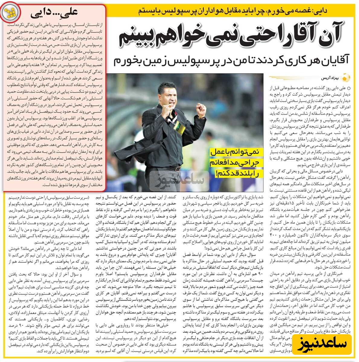 واقعا درک نمیکنم چرا من الان باید به جای اینکه سرمربی پرسپولیس باشم، به عنوان سکاندار راهآهن باید مقابل طرفداران این تیم قرار بگیرم؟ برخی افراد در پرسپولیس هنگامی که من سرمربی این تیم بودم دست به هر کاری زدند تا علی دایی زمین بخورد.