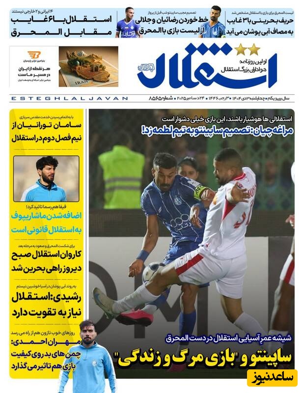 به گزارش سرویس ورزش ساعدنیوز، روزنامه‌ها در شماره امروز خود به موضوعات مختلفی پرداخته‌اند؛ از گزارش‌های داغ ورزشی و حواشی پیرامون تیم‌های ملی گرفته تا تحلیل‌های سیاسی و اقتصادی. در این میان، اخبار روز، تحلیل‌ها و دیدگاه‌های تازه‌ای به مخاطبان ارائه می‌دهند.