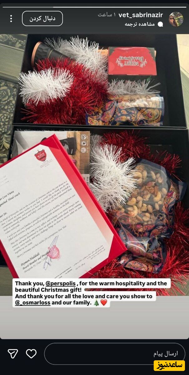 به گزارش سرویس ورزش ساعدنیوز، همسر اوسمار چند روزی است که به ایران آمده تا در کنار سرمربی پرسپولیس حضور داشته باشد و گشتی هم در تهران بزند. باشگاه پرسپولیس هم به مناسبت سال نو میلادی هدایایی به اوسمار و همسرش داد و به نوعی آن ها را سورپرایز کرد.