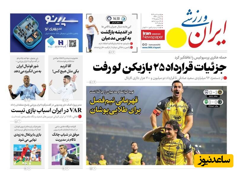 به گزارش سرویس ورزش ساعدنیوز، روزنامهها در شماره امروز خود به موضوعات مختلفی پرداختهاند؛ از گزارشهای داغ ورزشی و حواشی پیرامون تیمهای ملی گرفته تا تحلیلهای سیاسی و اقتصادی. در این میان، اخبار روز، تحلیلها و دیدگاههای تازهای به مخاطبان ارائه میدهند.