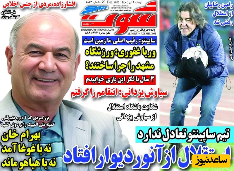 به گزارش سرویس ورزش ساعدنیوز، روزنامهها در شماره امروز خود به موضوعات مختلفی پرداختهاند؛ از گزارشهای داغ ورزشی و حواشی پیرامون تیمهای ملی گرفته تا تحلیلهای سیاسی و اقتصادی. در این میان، اخبار روز، تحلیلها و دیدگاههای تازهای به مخاطبان ارائه میدهند.