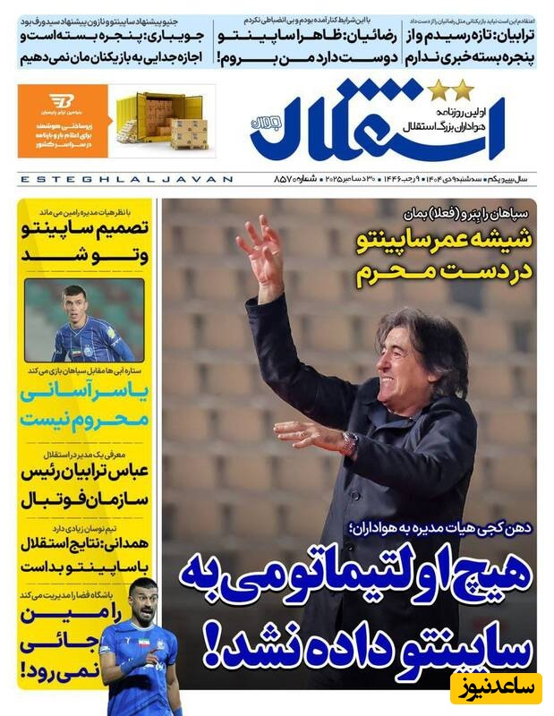 به گزارش سرویس ورزش ساعدنیوز، روزنامهها در شماره امروز خود به موضوعات مختلفی پرداختهاند؛ از گزارشهای داغ ورزشی و حواشی پیرامون تیمهای ملی گرفته تا تحلیلهای سیاسی و اقتصادی. در این میان، اخبار روز، تحلیلها و دیدگاههای تازهای به مخاطبان ارائه میدهند.