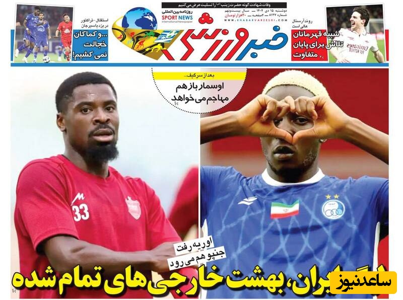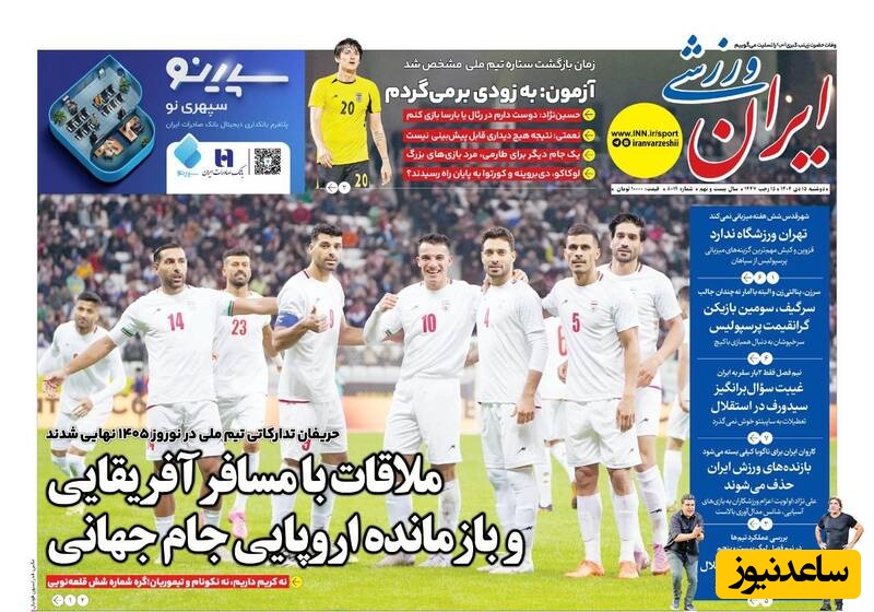 به گزارش سرویس ورزش ساعدنیوز، روزنامهها در شماره امروز خود به موضوعات مختلفی پرداختهاند؛ از گزارشهای داغ ورزشی و حواشی پیرامون تیمهای ملی گرفته تا تحلیلهای سیاسی و اقتصادی. در این میان، اخبار روز، تحلیلها و دیدگاههای تازهای به مخاطبان ارائه میدهند.