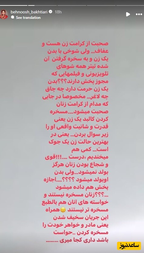 تصویر زیر را بهنوش بختیاری در اینستاگرامش استوری کرده است: