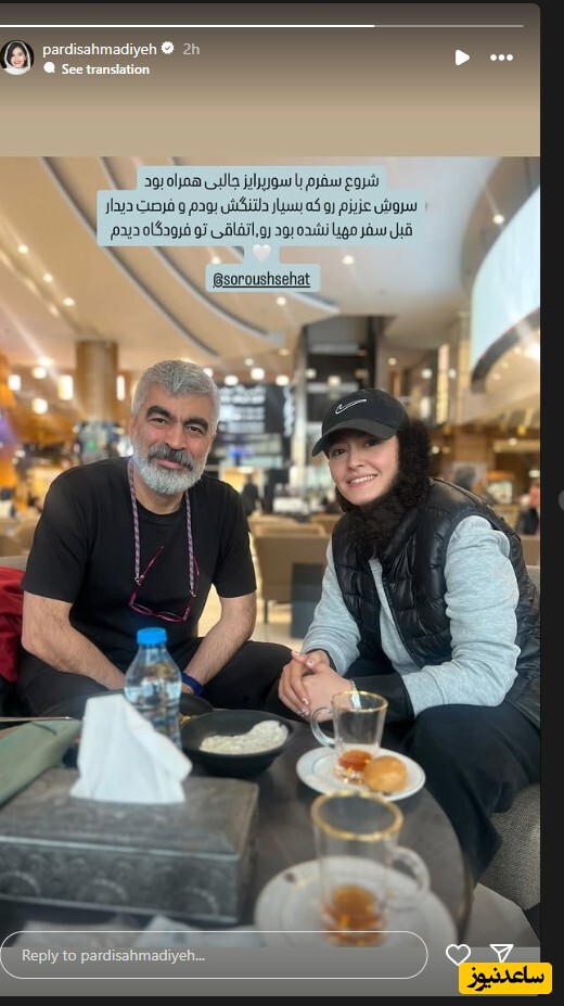 استوری پردیس احمدیه از دیدارش با سروش صحت در فرودگاه