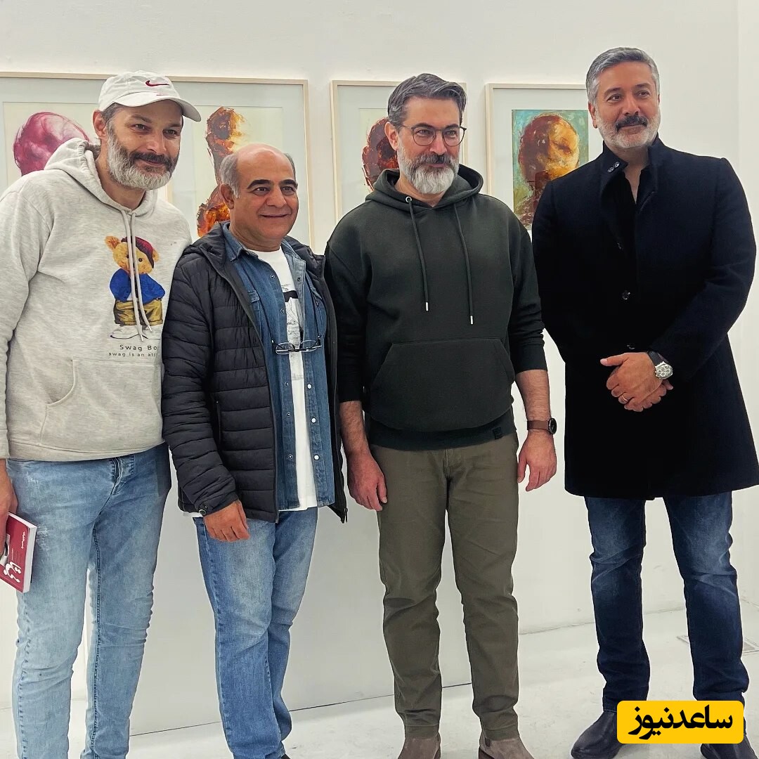 رامین پرچمی با انتشار این عکس نوشت: با دوستان سالهای طولانی سیاوش چراغی پور، پارسا پیروزفر، حمیدرضا پگاه در نمایشگاه نقاشی و هنرهای تجسمی «سوی دیگر»، پشت به آثار پارسا.