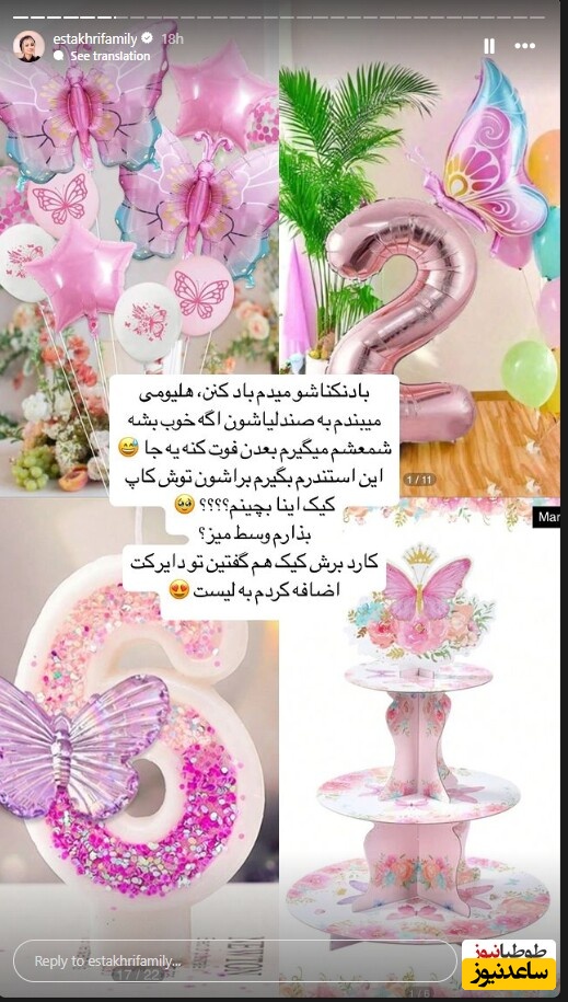 سپیده بزمی پور که بعد از ازدواجش با شاهرخ استخری و تولد دختر دومش در فضای مجازی فعالیت روزانه دارد امروزه به یکی از بلاگرهای معروف اینستاگرامی تبدیل شده. وی از روزمرگی هایش فیلم و عکس های متعدد منتشر می کند. در ادامه تصاویری که وی در آستانه ی تولد نبات منتشر کرده است را مشاهده بفرمایید.