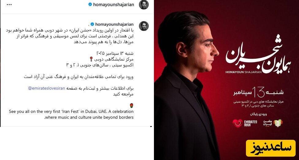 این در حالی است که شجریان پیشتر اعلام کرده بود شنبه 22 شهریور (13 سپتامبر) در مرکز نمایشگاهی دوبی (اکسپو سیتی، سالنهای جنوبی 1، 2 و 3) اجرا خواهد داشت. با این حساب بسیار بعید و دور از ذهن است که در این فاصلهی زمانی کوتاه موافقت شجریان برای اجرا در ورزشگاه آزادی جلب و مقدمات برگزاری کنسرت او در این مکان فراهم شود.