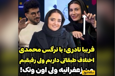 ما یه انجمن داریم به اسم سوسکی ها که نرگس محمدی رئیسشه و خیلی دیکتاتوره. خودش اخراج می کنه.و میشینیم اونجا غیبت می کنیم. در ادامه خطاب به نرگس محمدی گفت شما در اون کتگوری نیستی که بخوایم پشت سرت حرف بزنیم.