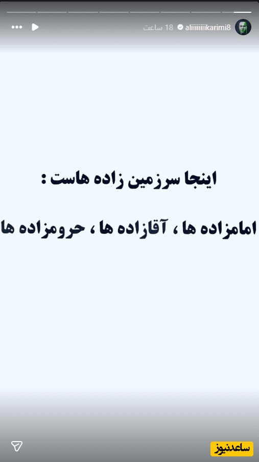 به گزارش سرویس هنر و رسانه پایگاه خبری تحلیلی ساعدنیوز به نقل از فارس،در روزهای ابتدایی هفته، علی کریمی که فوتبالیست بود اما امروز از نگاه بسیاری به نمادی از وطنفروشی تبدیل شده. در صفحه مجازی خود پا را فراتر گذاشت و با ادبیاتی توهینآمیز به مردم ایران حمله کرد؛ فردی که پیشتر همواره خود را در کنار مردم معرفی میکرد.