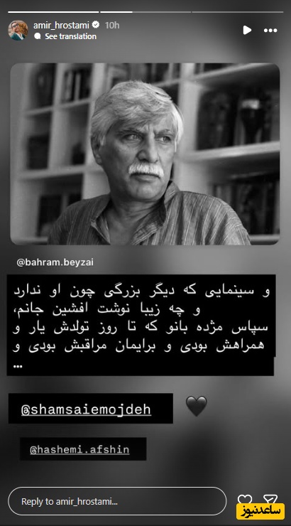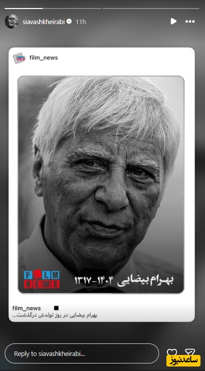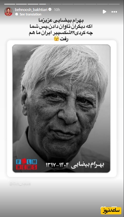 به گزارش سرویس هنر و رسانه ساعدنیوز، بهرام بیضایی زاده پنج دیماه 1317 درتهران بود. این کارگردان سینما و تئاتر، نمایشنامهنویس، فیلمنامهنویس و پژوهشگر کشور در آمریکا از دنیا رفت. دانشگاه ایرانشناسی استنفورد آمریکا این خبر را تایید کرد.