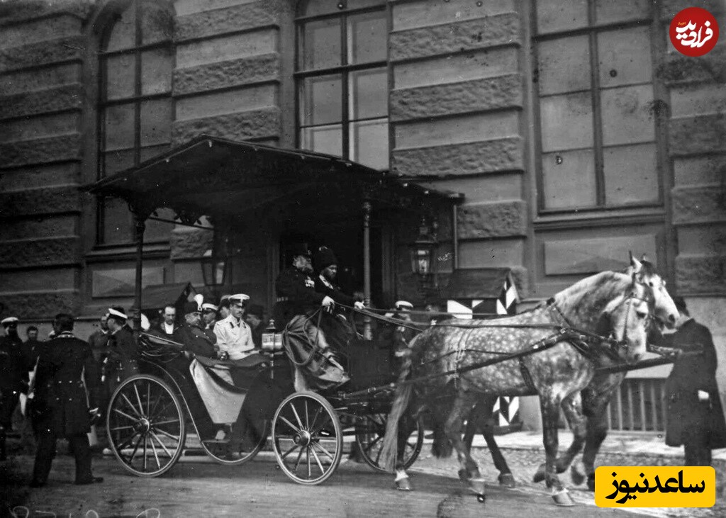 مظفرالدین شاه و دوک میخاییل الکساندروویچ (برادر کوچکتر امپراتور نیکولاس دوم) با کالسکه در خیابانهای سن پترزبورگ