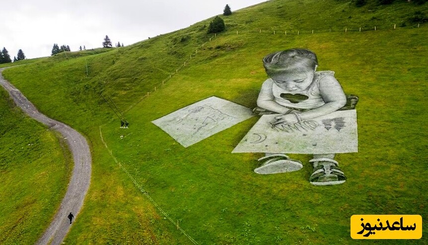 به گزارش سرویس چندرسانه ای ساعدنیوز، در دامنههای کوهستانی یک روستایی سوئیسی، هنرمندی به نام سِیپ (Saype) با استفاده از رنگهای تجزیهپذیر دو نقاشی دیواری بسیار بزرگ از کودکان را کشیده است. این کودکان نیز در حال طراحی کردن هستند و میخواهند دیدگاهشان از دنیای وسیع پیرامون را به تصویر بکشند.