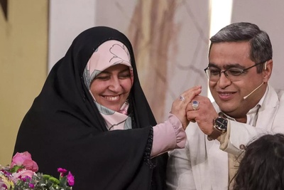 (فیلم) مهریه عجیب همسر مجری معروف / بای جالب پدرام کریمی و همسرش روی آنتن زنده