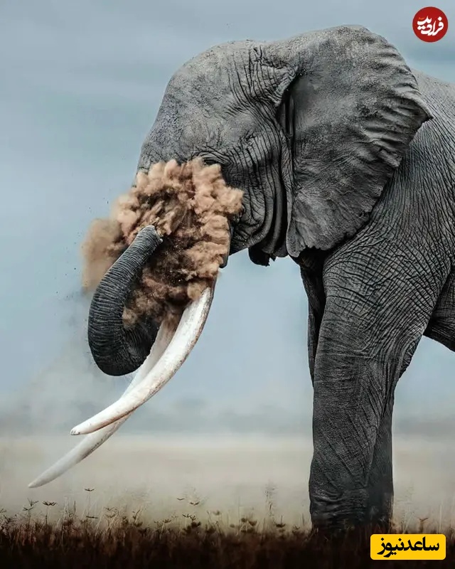 20. حمام خاک فیل: عکاسی حیاتوحش: دونال بوید، فیل خرطوم خود را بالا میبرد و ابری از غبار بر چهره و عاجهایش میپراکند. تونهای خاکی و بافت پوست، صحنهای دراماتیک ساخته که آیین، قدرت و ریتم جاودانه زندگی در دشتها را ثبت میکند.