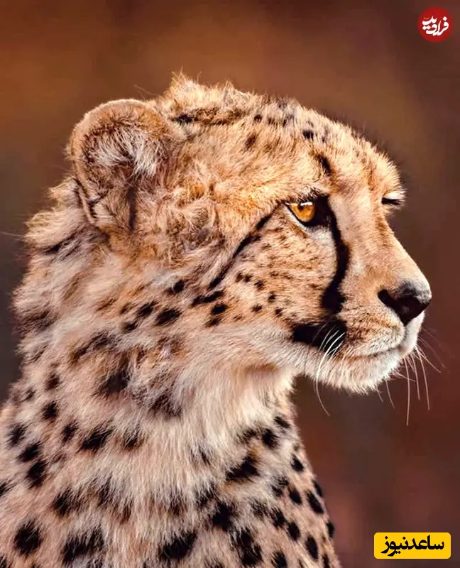 28. نیمرخ یوزپلنگ: عکاسی حیاتوحش: دونال بوید، یوزپلنگ به دوردست خیره شده، چشم کهرباییاش در برابر پسزمینه گرم و محو تیز و روشن است. نیمرخ تمیز، خطوط اشکمانند چهره و اندام کشیدهاش را برجسته میکند و ظرافت، تمرکز و آمادگی خاموش سریعترین شکارچی طبیعت را ثبت میکند.