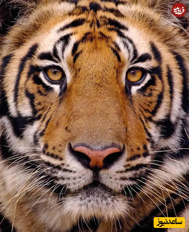 1. پرتره ببر بنگال: عکاسی حیاتوحش: اندی پارکینسون: نمایی نزدیک و قدرتمند از یک ببر بنگال که مستقیم در چشمان بیننده مینگرد. نوارهای تیز، نگاه طلایی و تقارن کامل، لحظهای شدید و صمیمی میآفریند که قدرت آرام و حضور خام و وحشی او را ثبت میکند.