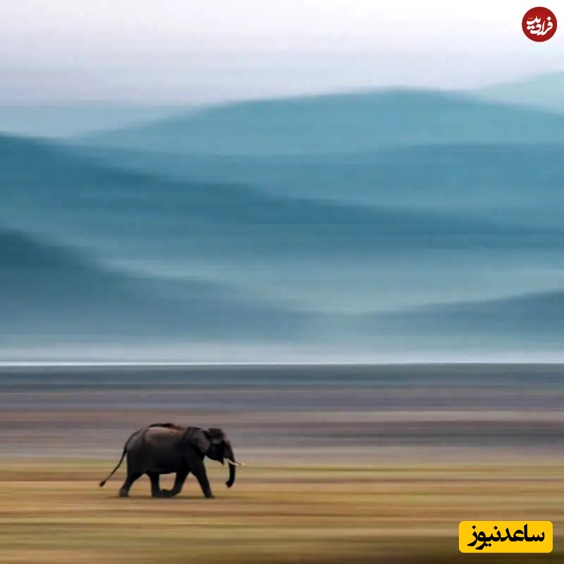 17. فیل در حرکت: عکاسی حیاتوحش هند: آشوک سیکری، فیلی تنها از زمینی باز عبور میکند؛ لایههای محو زمین و تپههای دوردست حس نقاشانهای از حرکت ایجاد کردهاند. این قاب هنری حرکت و فضا را درهم آمیخته و آزادی، مقیاس و عزم آرام را ثبت میکند.