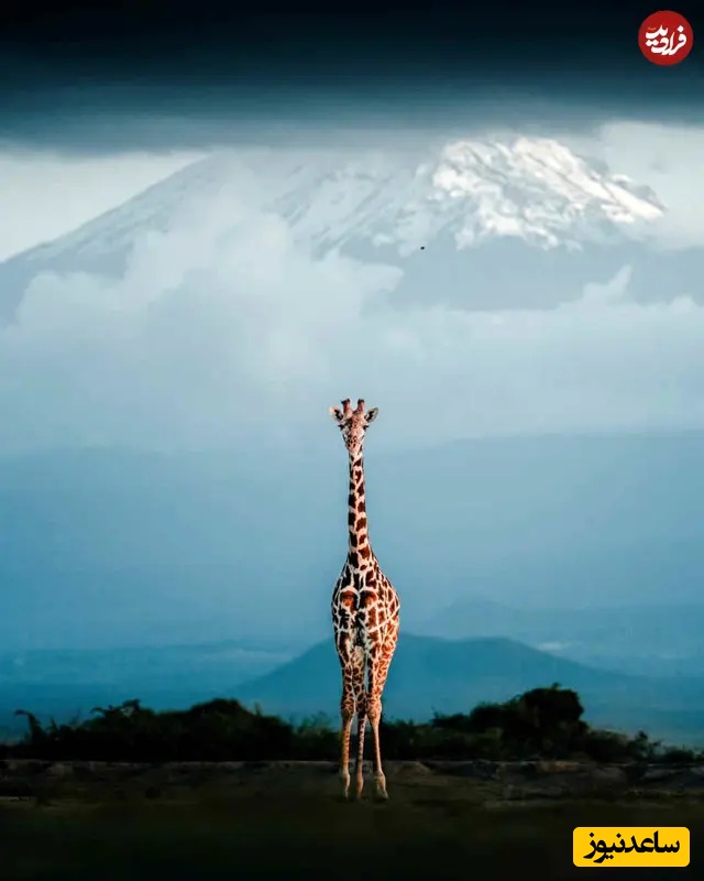 29. زرافه در برابر کوه: عکاسی حیاتوحش: دونال بوید، زرافهای تنها در برابر کوهی دوردست با قله پوشیده از برف ایستاده، سیلوئتش از پیشزمینه تیره برمیخیزد. پسزمینهی وسیع، مقیاس و تنهایی را برجسته کرده و ظرافت، پرسپکتیو و شکوه آرام چشمانداز وحشی را ثبت میکند.