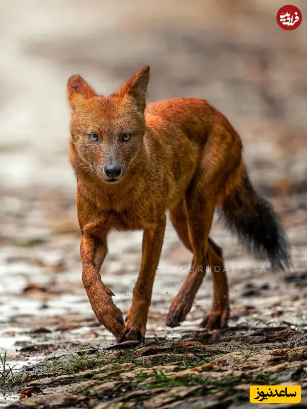 32. دُهول وحشی در حرکت: عکاسی حیاتوحش هند: گورودات اس. اِی، دهول تنها روی مسیر سنگی گام برمیدارد، چشمهایش ثابت و بدنش در میانه قدم آماده است. پوشش گرمرنگش با زمین خنثی در تضاد است و قابی قدرتمند ساخته که هوشیاری، چابکی و اعتمادبهنفس آرام یک شکارچی گروهی ماهر را ثبت میکند.