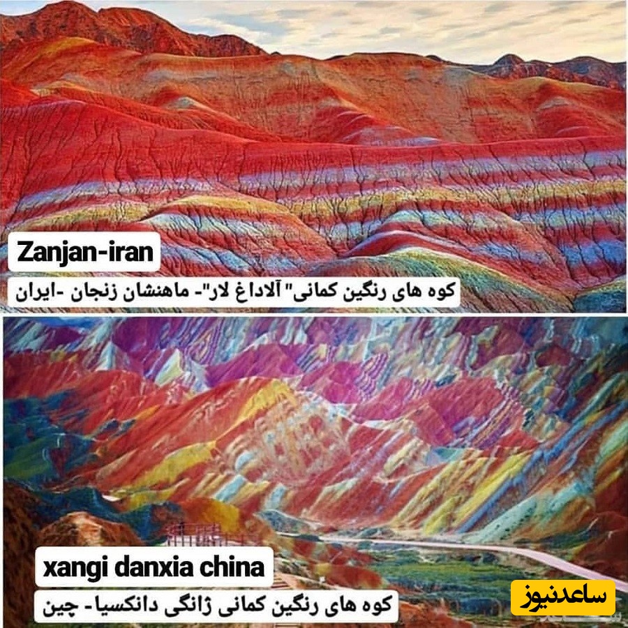 آلاداغ لار یا کوه های رنگین کمانی ماهنشان، یکی از زیباترین جلوه های اعجاز طبیعت در کشور عزیزمان هستند. این کوه های رنگی و تپه های رسی به دلیل وجود حوضچه های سرشار از رسوبات آهن در زمان فرآیند کوه زدایی و بالا آمدگی کوه ها و تغییر املاح و تثبیت نوع آن ها در رنگ رسوبات بوجود آمده اند. برادر این کوه های رنگین کمانی در چین قرار گرفته است که گویی مثل سیبی هستند که از وسط به دو نیم کرده باشند!