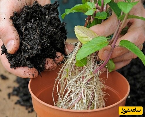 درنهایت اطراف نعنا را با خاک گلدان خوب پر کنید تا اطراف ساقه نعناع فضای خالی باقی نماند.