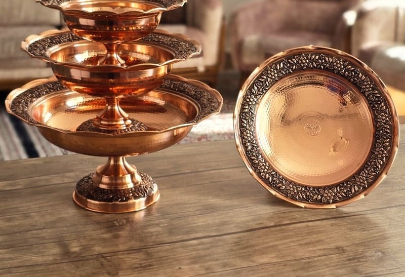 از انواع ظروف پذیرایی مسی میتوانیم نمونههای زیر را نام ببریم: