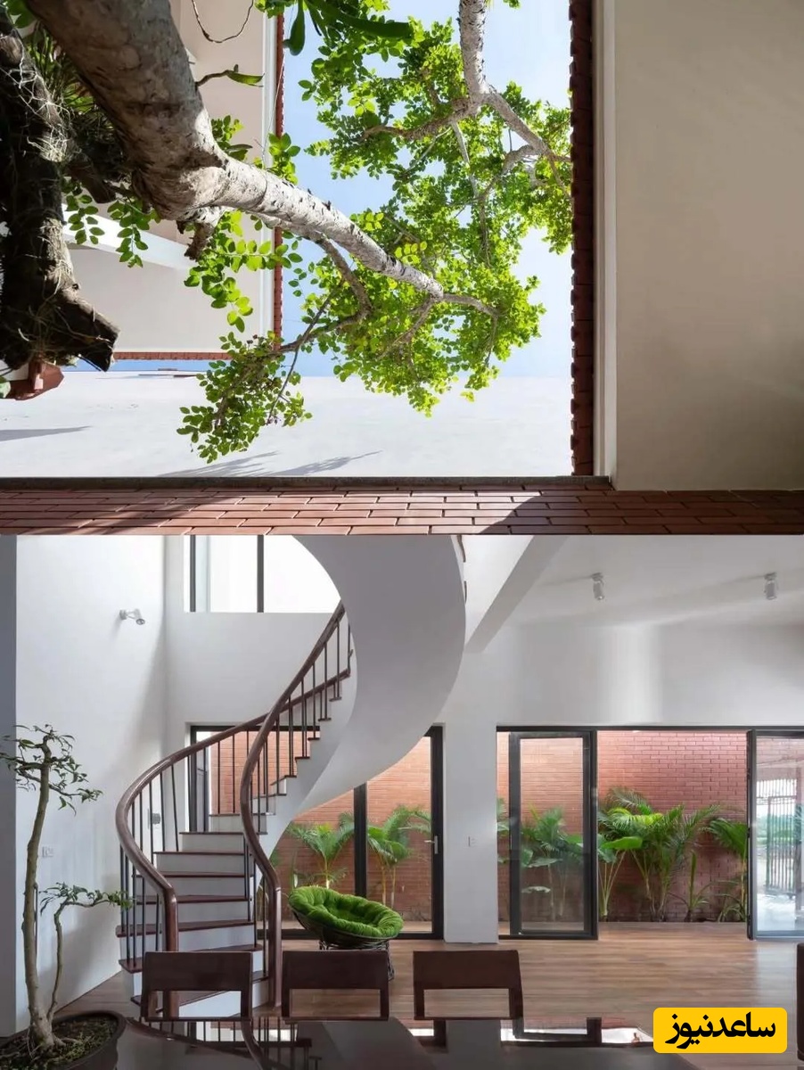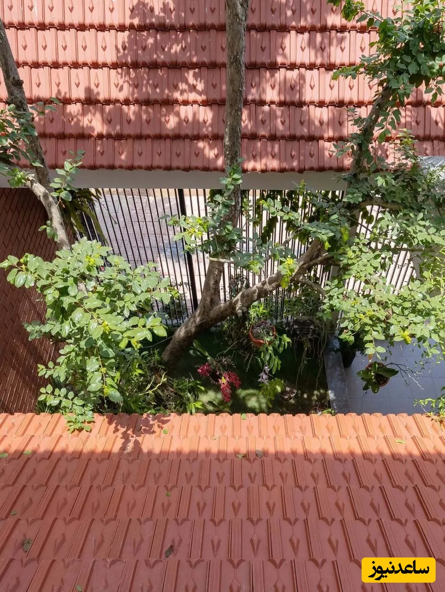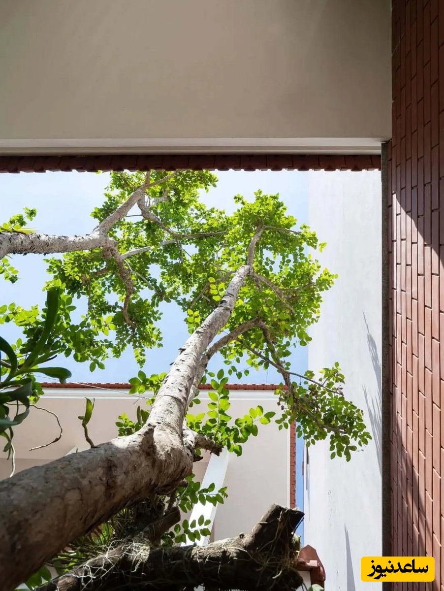 اما نوآوری اصلی در اینجاست که بخشی از سقف برای ایجاد یک فضای باز و نورگیر حذف شده است تا درختان کاشته شده در حیاط بتوانند به رشد خود ادامه دهند و سایهای طبیعی بر روی خانه ایجاد کنند. این فضای باز، تهویه و نور طبیعی را برای کل خانه فراهم میکند و نمادی از همزیستی انسان و طبیعت است.