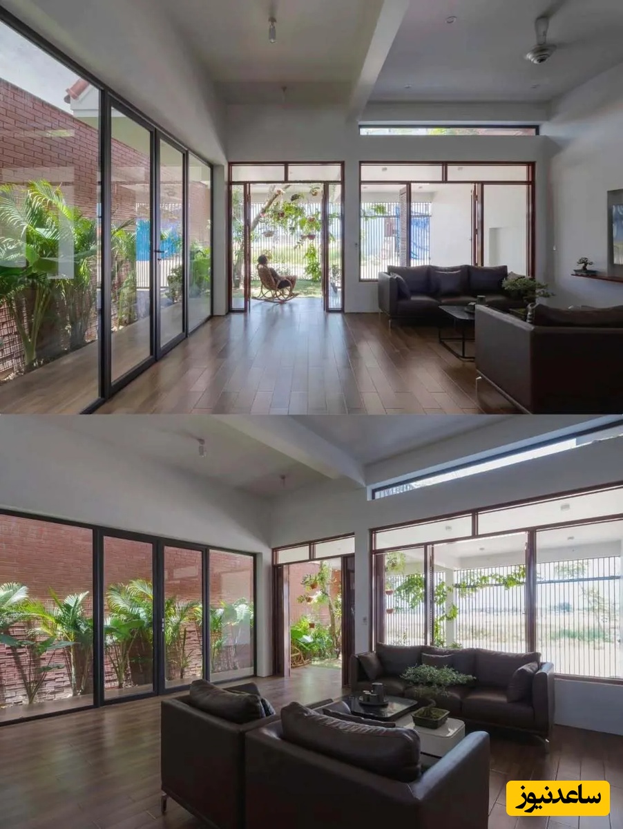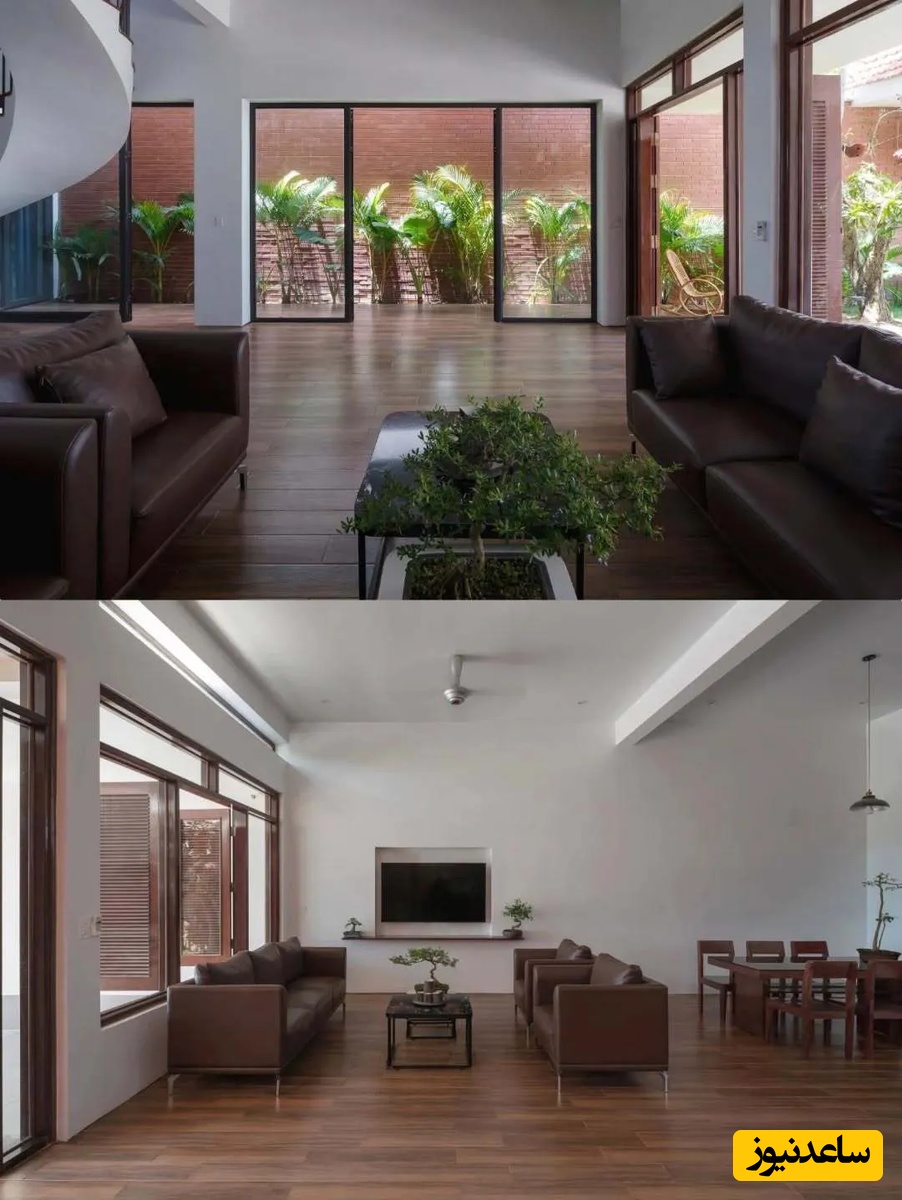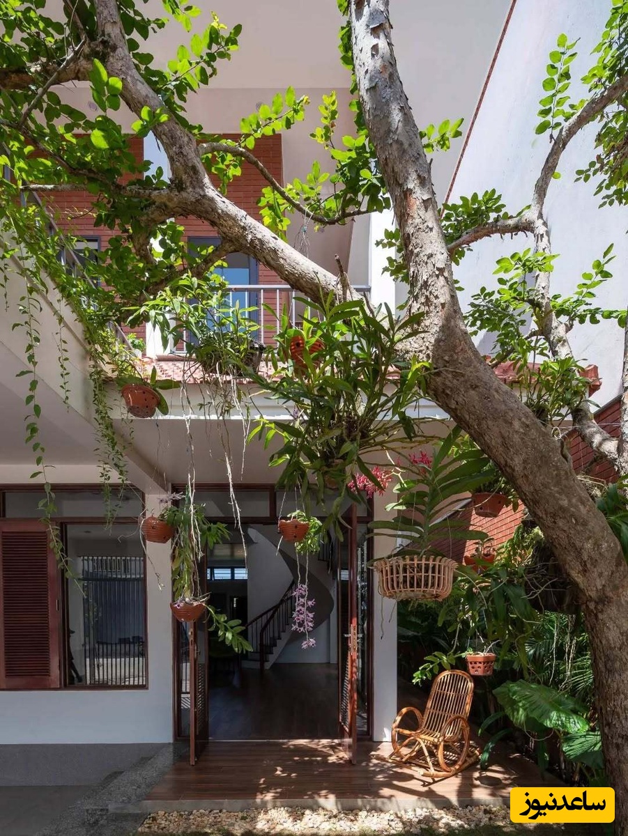 اما نوآوری اصلی در اینجاست که بخشی از سقف برای ایجاد یک فضای باز و نورگیر حذف شده است تا درختان کاشته شده در حیاط بتوانند به رشد خود ادامه دهند و سایهای طبیعی بر روی خانه ایجاد کنند. این فضای باز، تهویه و نور طبیعی را برای کل خانه فراهم میکند و نمادی از همزیستی انسان و طبیعت است.