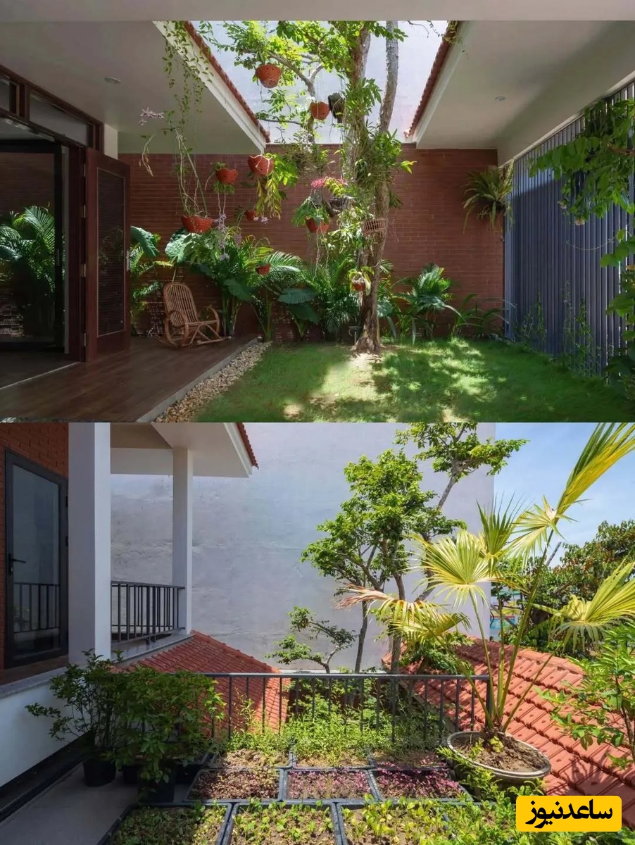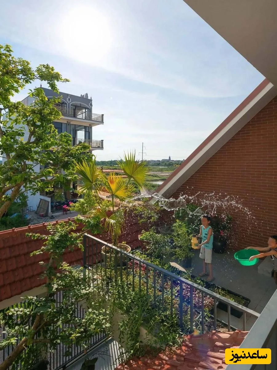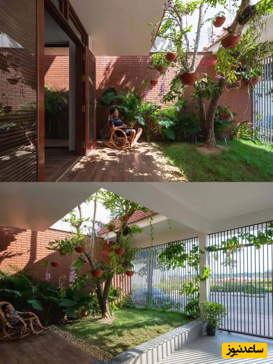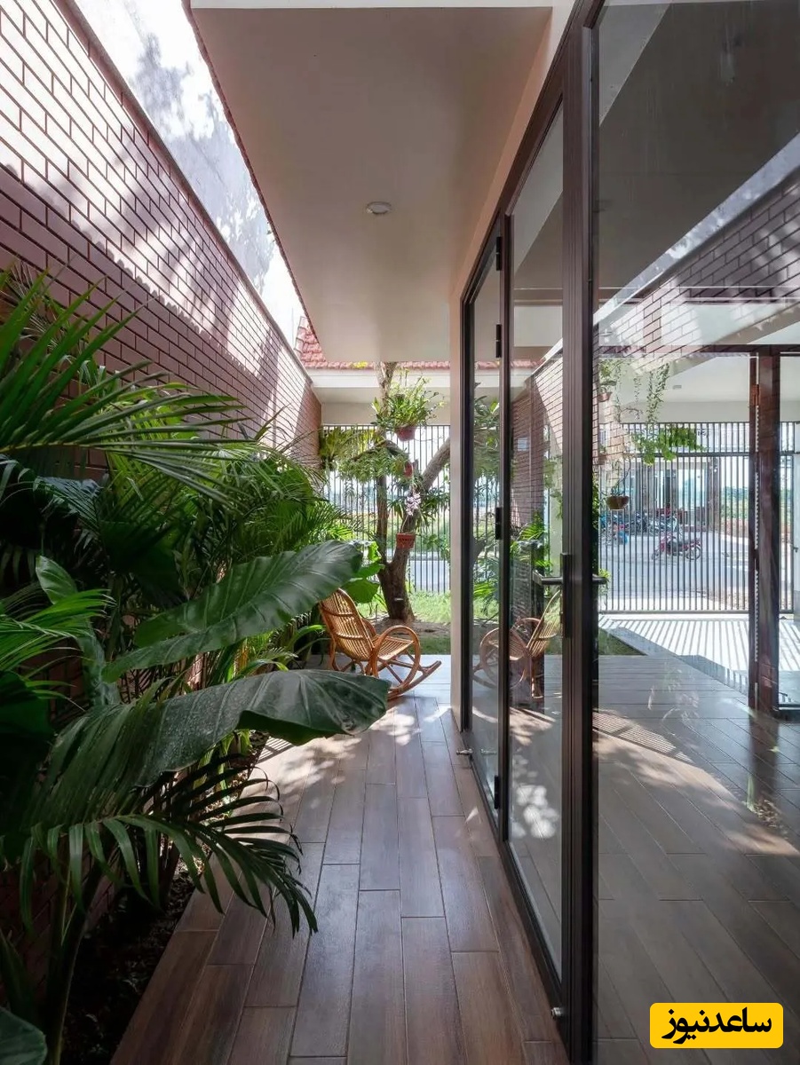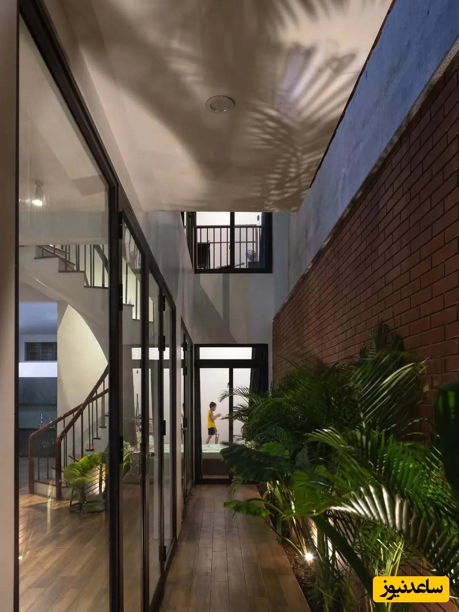با وجود عرض کم زمین، معمار با ایجاد فضاهای باز و حیاط در جلوی خانه و در امتداد آن، مشکل کمبود نور و تهویه را حل کرده است. این حیاطها که به عنوان فضای بافر بین خانه و خیابان عمل میکنند، یادآور طراحی خانههای سنتی ویتنامی هستند و زندگی را در شهر آسانتر میسازند. علاوه بر این، در طبقه دوم نیز فضایی برای پرورش سبزیجات در نظر گرفته شده است تا کودکان بتوانند در کنار والدین خود از طبیعت لذت ببرند و مهارتهای باغبانی را بیاموزند. این فعالیتهای مشترک، به تقویت پیوند خانوادگی نیز کمک میکند.