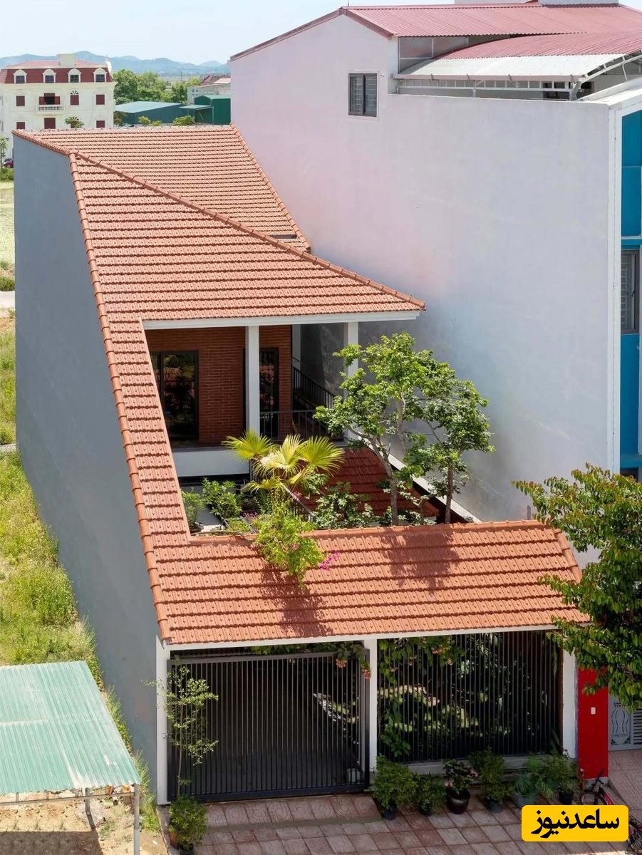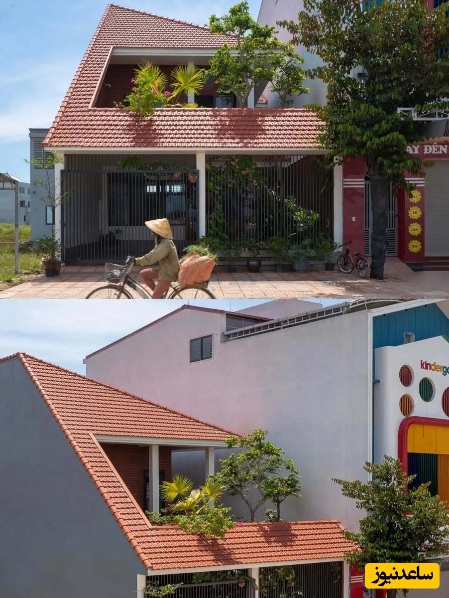 به گزارش سرویس معماری ساعدنیوز، این خانه روی یک زمین 8 در 20 متری طراحی شده است و هدف از ساخت آن، حفظ سبک زندگی سنتی و فراهم کردن فضایی برای رشد کودکان در دل طبیعت بوده است. معمار با الهام از خانههای قدیمی، یک سقف بزرگ و شیبدار با کاشیهای قرمز را طراحی کرده که شبیه به کلاهی مخروطی کل خانه را میپوشاند.