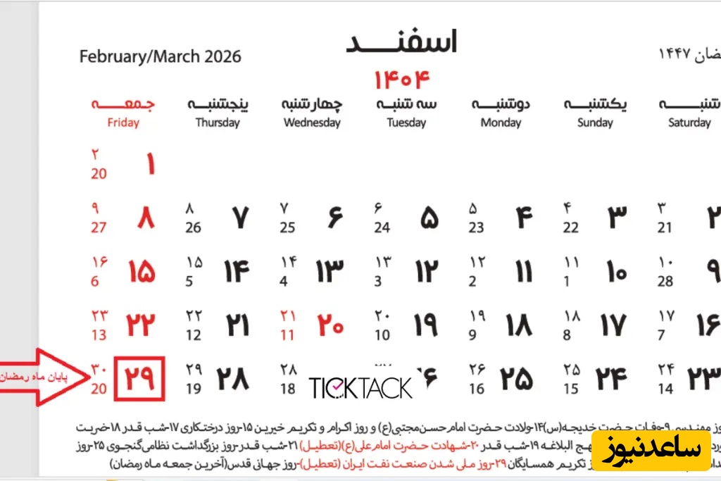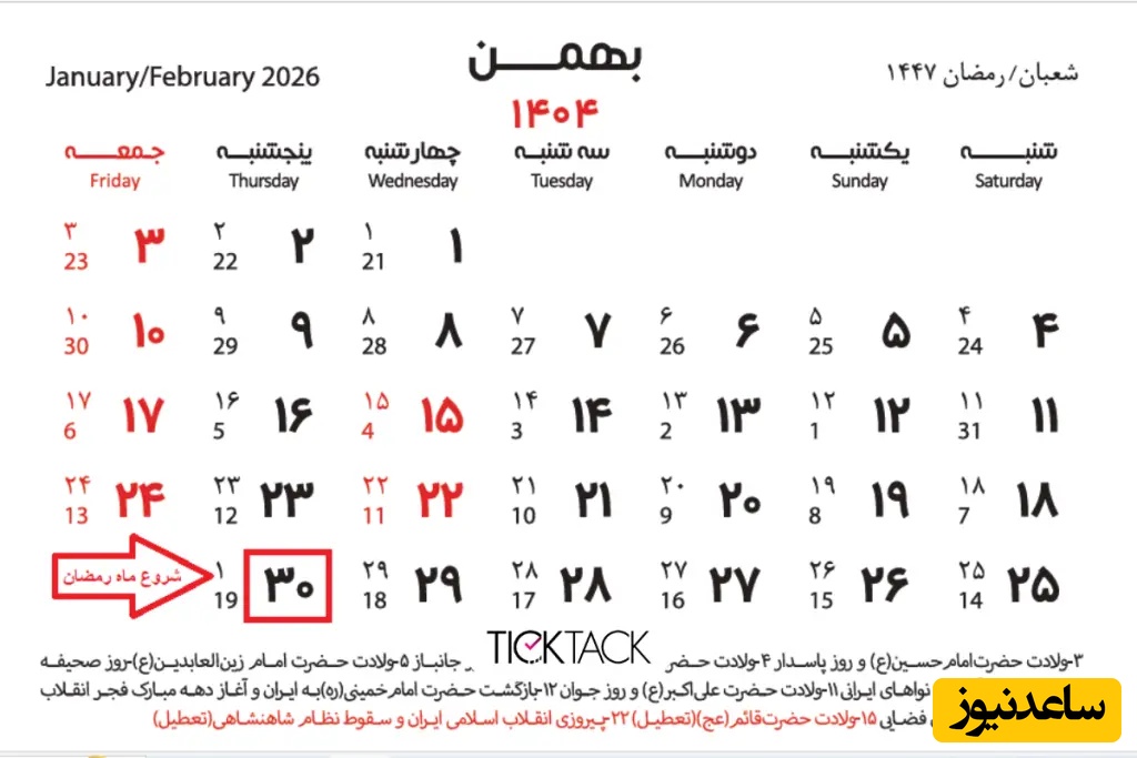 ماه رمضان 1404 در تقویم بهمن و اسفند ماه امسال، نشاندهنده روزهای این ماه مبارک میباشد. تقویم ماه رمضان را در دو تصویر به شرح زیر آوردهایم.
