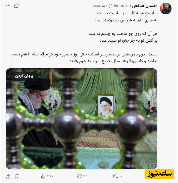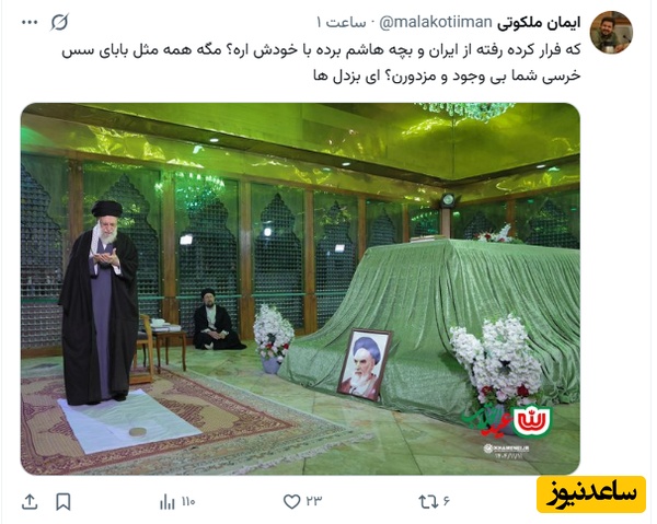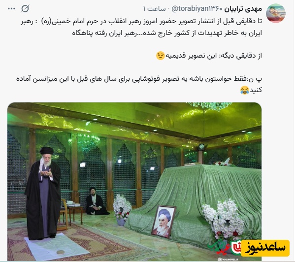 مهدی ترابیان: تا دقایقی قبل از انتشار تصویر حضور امروز رهبر انقلاب در حرم امام خمینی(ره): رهبر ایران به خاطر تهدیدات از کشور خارج شده...رهبر ایران رفته پناهگاه