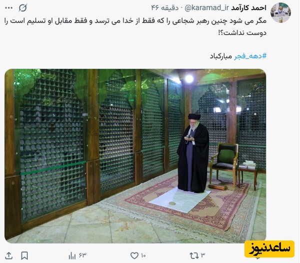 احمد کارآمد: مگر می شود چنین رهبر شجاعی را که فقط از خدا می ترسد و فقط مقابل او تسلیم است را دوست نداشت؟!