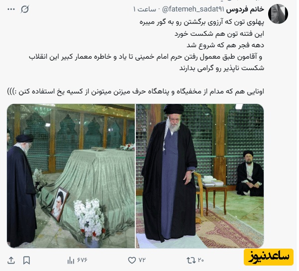 خانم فردوس: پهلوی تون که آرزوی برگشتن رو به گور میبره
