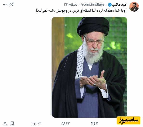 امید ملایی: [او با خدا معامله کرده لذا لحظهای ترس در وجودش رخنه نمیکند]