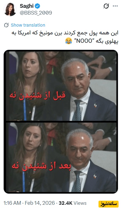 اما با وجود اتوبوسهای مجانی و همینطور چایشیرین رایگان، یا حتی با توجیه حمله نظامی بیگانه به ایران توسط رضا پهلوی، وقتی «کریستین امانپور» خبرنگار مشهور ایرانی-انگلیسی از «لیندسی گراهام» سناتور افراطی جمهوریخواه آمریکایی ـ آن هم مقابل چشم همه حاضرین در نشست مونیخ ـ پرسید که «آیا از رضا پهلوی حمایت میکنید؟»، این سناتور آمریکایی قاطعانه پاسخ داد: «نه!».