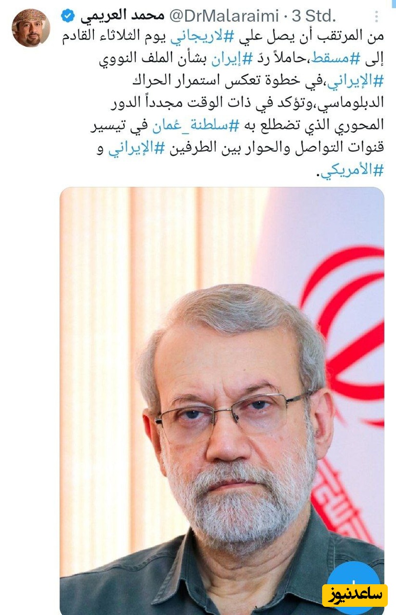 انتظار میرود علی لاریجانی سهشنبه آینده وارد مسقط شود و پاسخ ایران در مورد پرونده هستهای ایران را به همراه داشته باشد، اقدامی که نشان دهنده ادامه فعالیت دیپلماتیک است و در عین حال نقش محوری سلطنت عمان را در تسهیل کانالهای ارتباطی و گفتگو بین طرفهای ایرانی و آمریکایی تأیید میکند..