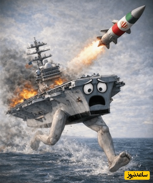 یک لقمه چرب با چاشنی ناو!در تصویری دیگر حتی کاربران وقتی دیدهاند که آمریکا بارها به عظمت ناوهایش بالیده، تصویر یک ماهیتابه روی گاز را باهوش مصنوعی ساختهاند که تا نیمه آب دارد و ناو آمریکایی در آن قرار داده شده است. این دو معنا دارد. اول کوچککردن و تصغیر عامدانه تهدید دشمن. معنای دوم اما عمیق و قابلتأمل است؛ ناو در ماهیتابه در واقع به غذا تشبیه شده و این کنایه از این است که غرور آمریکا ممکن است کار دستش بدهد و این ناو یک لقمه چرب برای دشمن مقتدر باشد.