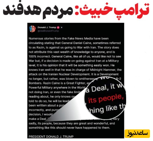 به گزارش سرویس سیاسی پایگاه خبری ساعدنیوز، روزنامه «فرهیختگان» در گزارشی تحلیلی با عنوان «ترامپ خبیث: مردم هدفند»، به واکاوی ابعاد جدید تهدیدات اخیر دونالد ترامپ علیه ایران پرداخته و معتقد است که ادبیات اخیر رئیسجمهور آمریکا، پرده از یک واقعیت تلخ و قدیمی برداشته است. این روزنامه با اشاره به پست اخیر ترامپ در شبکه اجتماعی «تروث» که در آن از «روزهای بسیار بد برای مردم ایران» سخن گفته بود، تأکید میکند که این بار هژمونی آمریکا صراحتاً اعتراف کرده که در عملیاتهای بهاصطلاح «آزادیخواهانه» خود، مستقیماً معیشت و بقای ملت ایران را هدف قرار داده است.
