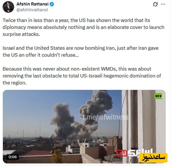 به گزارش سرویس سیاسی پایگاه خبری ساعدنیوز، افشین رتنسی، نویسنده و تحلیلگر رسانهای، در واکنشی تند به تحولات اخیر اعلام کرد که برای دومین بار در کمتر از یک سال، ایالات متحده به تمام دنیا نشان داد که دیپلماسیاش هیچ ارزشی ندارد. به گفته او، واشنگتن از میز مذاکره تنها به عنوان یک پوشش پیچیده برای انجام حملات غافلگیرانه استفاده میکند.