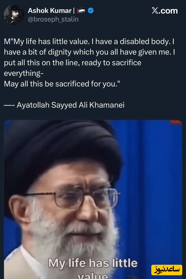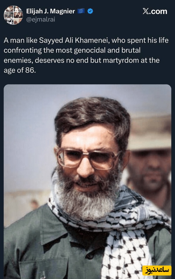 در میان این توییتها، یک جنگپژوه نیز نوشت مردی مانند سید علی خامنهای که عمری را در مقابله با نسلکشترین و وحشیترین دشمنان گذرانده در سن 86 سالگی سزاوار هیچ سرانجامی جز شهادت نیست.