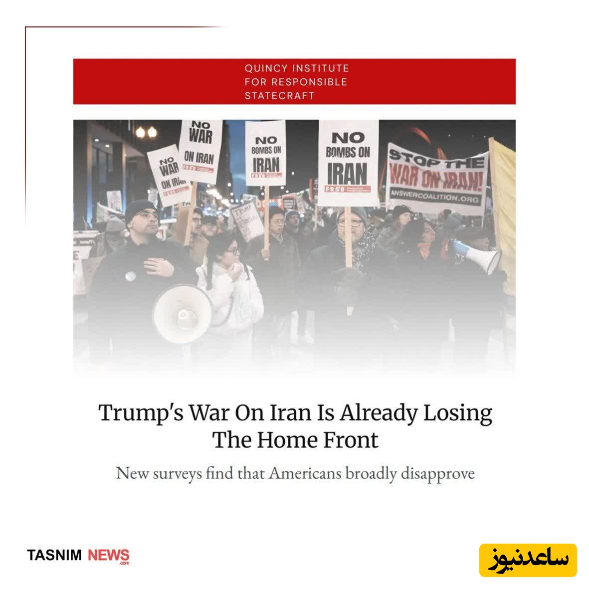 به گزارش سرویس سیاست پایگاه خبری ساعدنیوز، اندیشکده کوئینسی نوشت: ترامپ جنگ با ایران را در خانه باخته است. نظرسنجیها از مخالفت گسترده آمریکاییها با جنگ خبر میدهند.