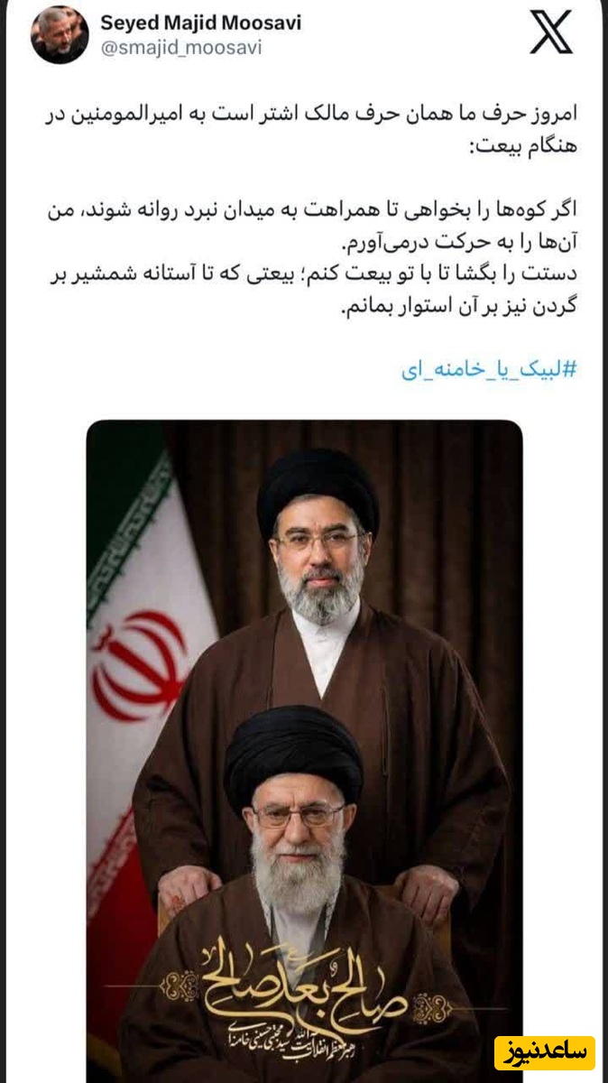 امروز حرف ما همان حرف مالک اشتر است به امیرالمومنین در هنگام بیعت: