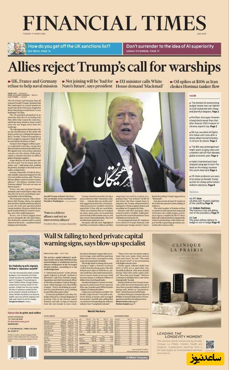 🔹️ایالات متحده توسط اکثر «همپیمانان» ناتو مطلع شده است که آنها نمیخواهند در عملیات نظامی ما علیه ایران دخالت کنند، با وجود اینکه موافقند ایران نباید سلاح هستهای داشته باشد.