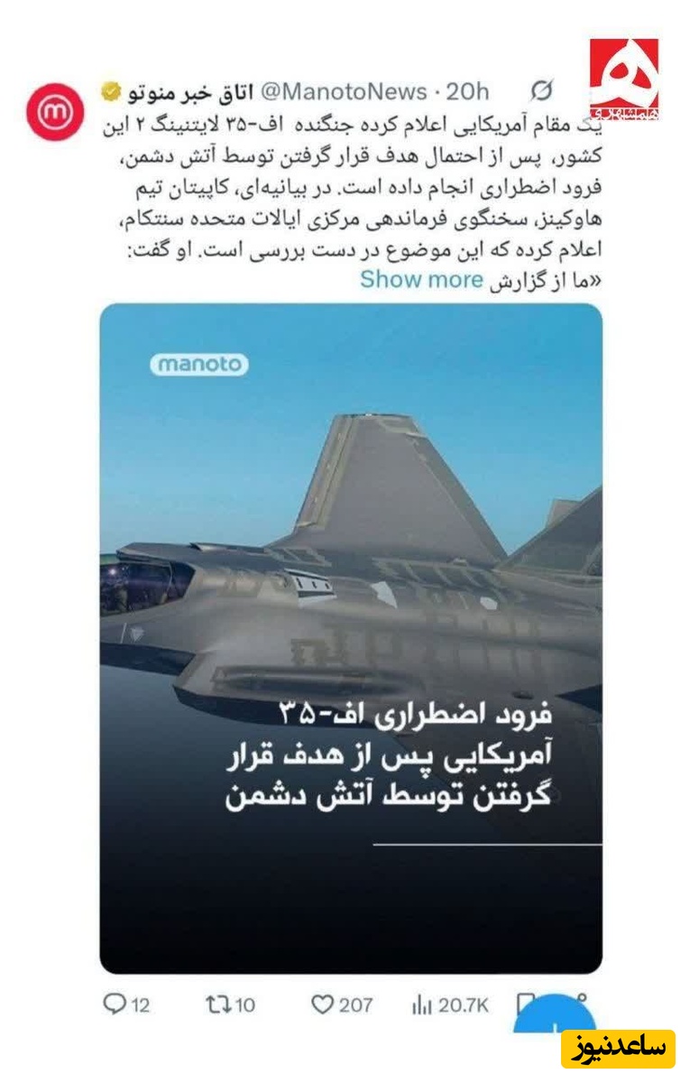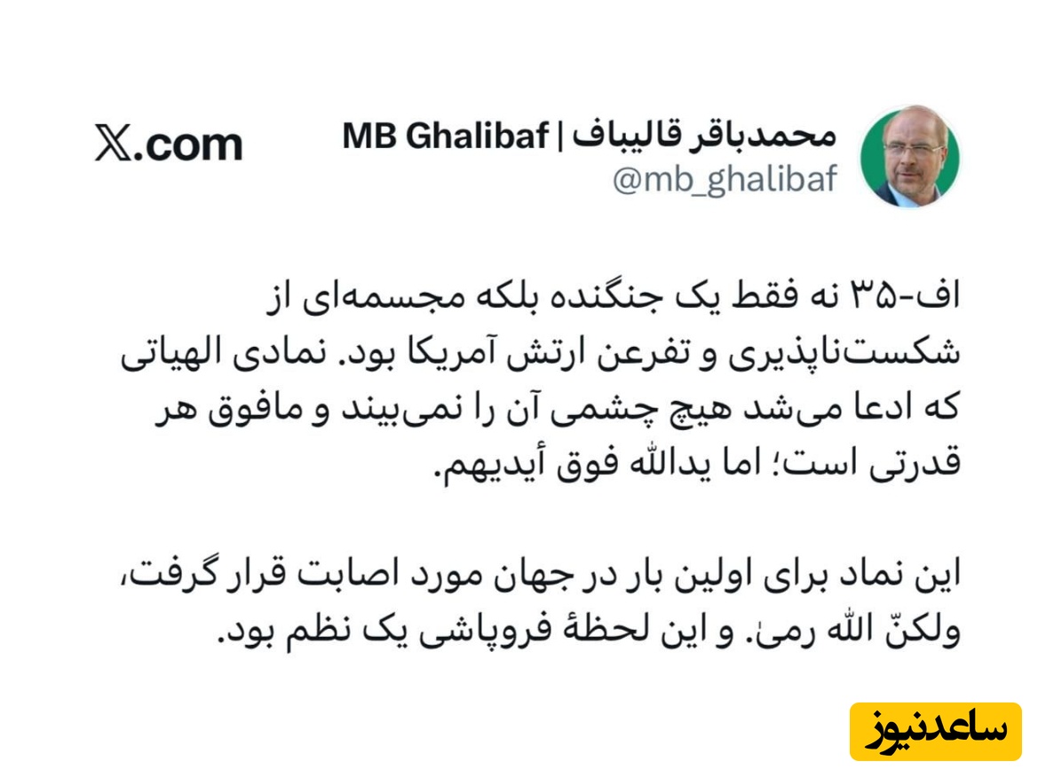 نکته مهم این نیست که F-35 سرنگون شده یا نه، بلکه این واقعیت است که پدافند هوایی ایران توانسته است F-35 را شناسایی، ردیابی، قفل کرده و به آن شلیک کند و آسیب برساند.