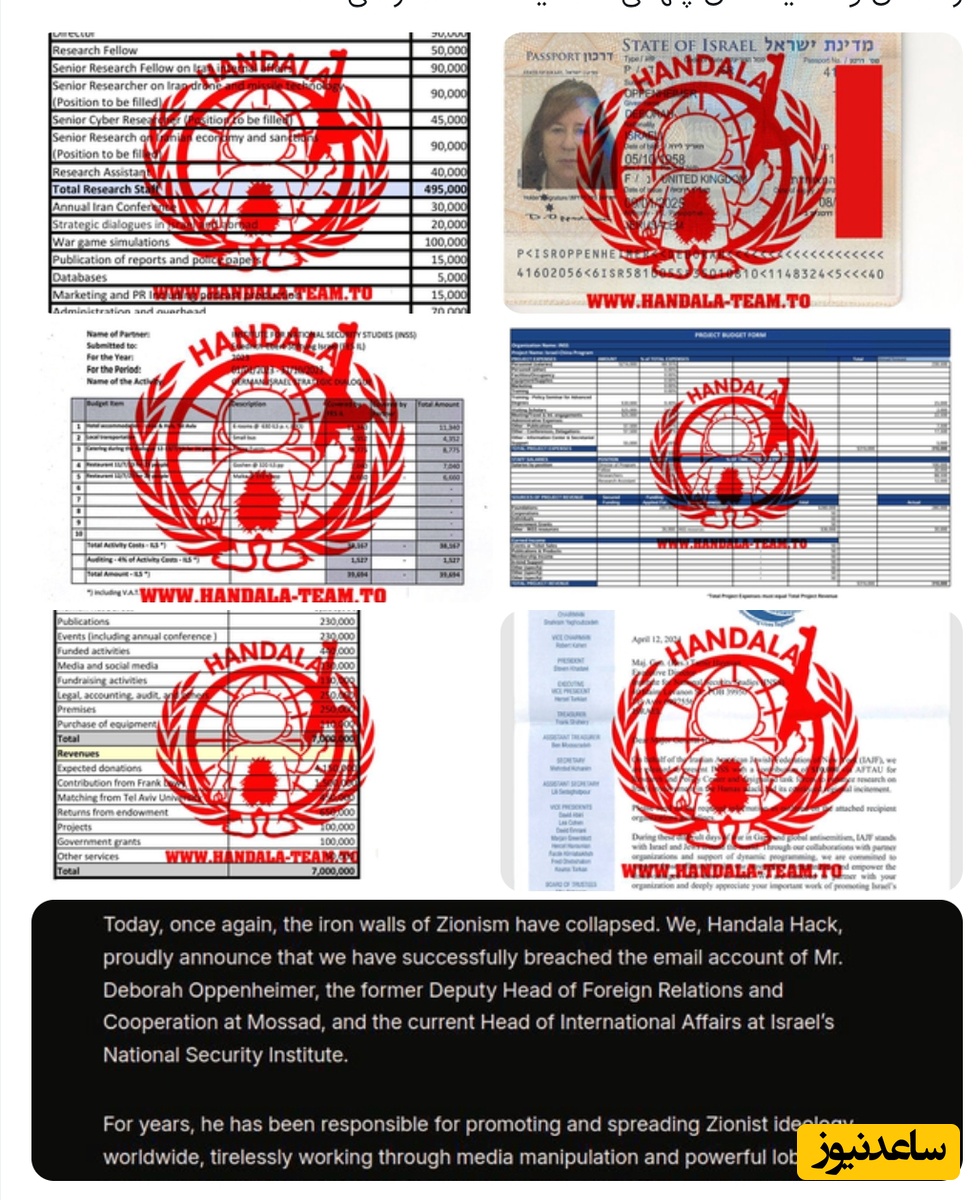 به گزارش سرویس سیاسی پایگاه خبری ساعدنیوز، گروه سایبری حنظله اعلام کرد: با موفقیت به حساب ایمیل دبورا اوپنهایمر، معاون پیشین رئیس بخش روابط خارجی و همکاری در موساد و رئیس کنونی امور بینالملل در مؤسسه امنیت ملی اسرائیل، نفوذ کردهایم.