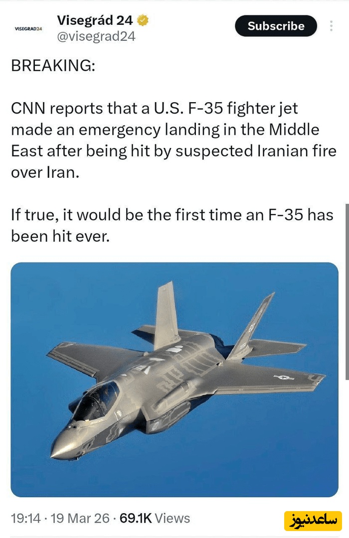 به گزارش سرویس سیاسی پایگاه خبری ساعدنیوز، در حالی که دونالد ترامپ رئیس جمهور آمریکا مدعی شده بود تمام سیستم دفاعی و پدافندی ایران را مورد هدف قرار داده است.یک جنگنده f35 رادارگریز و راهبردی امریکا توسط پدافند ایران سرنگون شد.
