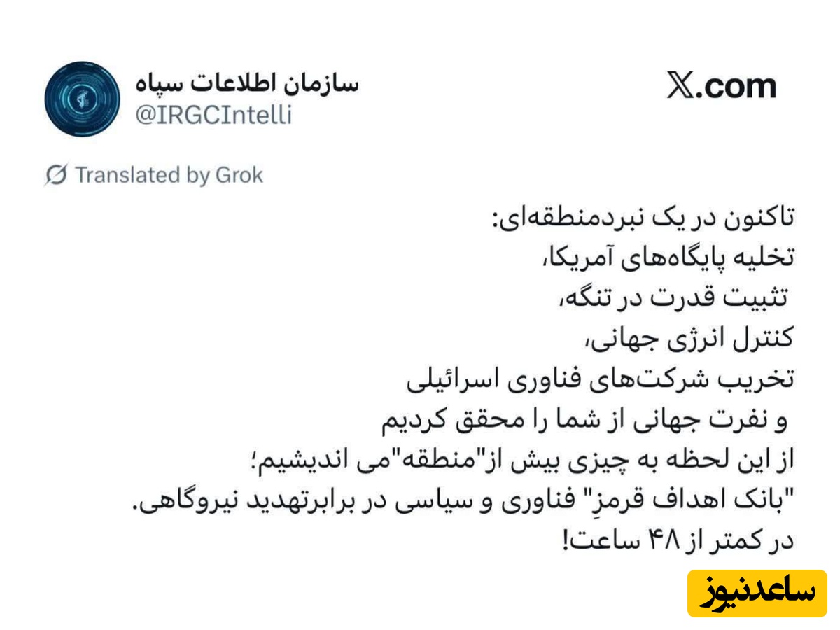 🔹رئیسجمهور آمریکا: ایران را از روی نقشه محو کردهایم؛ با این حال، یک تحلیلگر بیمایه میگوید که من به اهداف خود نرسیدهام. چرا، رسیدهام!